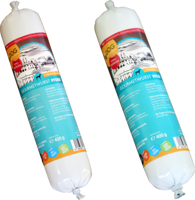 - In jeder Wurst ist nur eine Fleischsorte enthalten, einmal Pferd, einmal Wild (Hirsch und Reh)